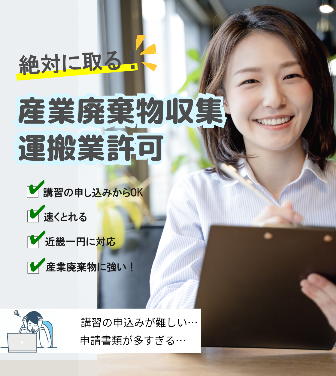 許可のとり方は、人によって様々ですが、これからのあなたの事業に何がどう必要か、を見極めて心をこめて申請しています。